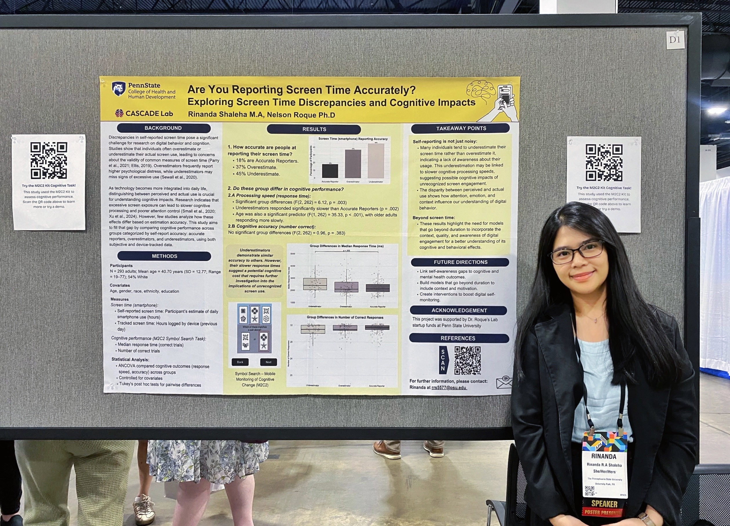 My research interests have developed over time, and they reflect my curiosity about human behavior and development in different settings. During my undergraduate and master’s studies in Psychology, I explored various topics, which gave me a foundation for learning and growth. As I transitioned into my Ph.D. program, I began to focus on exploring the relationships between technology use, particularly screen use behavior, and its effects on cognition and mental health throughout the lifespan. I am especially interested in utilizing Ecological Momentary Assessment (EMA) to capture real-time data and gain deeper insights into these dynamics. This journey reflects my commitment to improving digital well-being and promoting healthier interactions with technology for meaningful contributions to human development.